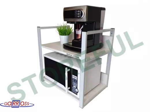 • Полка надежно крепится к стене при помощи анкеров или шурупов с дюбелями, на ней можно разместить микроволновую печь, тостер, кофемашину, чайник, посуду, специи
