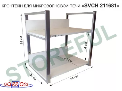 Кронштейн для микроволновки, 54см серебристый "SVCH 211681" две полки 35х54см со стенками, сосна