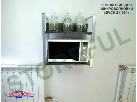 Кронштейн для микроволновки, 54см серебристый "SVCH 211964" две полки 35х54см со стенками, венге