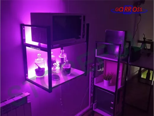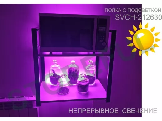 • Подсветка розового цвета сдвоенная для двух полок, её можно устанавливать в любое место на полке