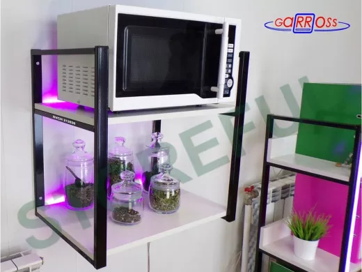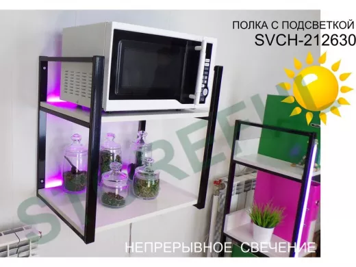 В корзину Купить в 1 клик Кронштейн для микроволновки с розовой подсветкой, 54см черный "SVCH 212630" две полки 35х54см,сосна