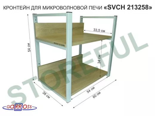 В корзину Купить в 1 клик Кронштейн для микроволновки, высота, 54см серый "SVCH 213258" две полки 35х60см со стенками, дуб