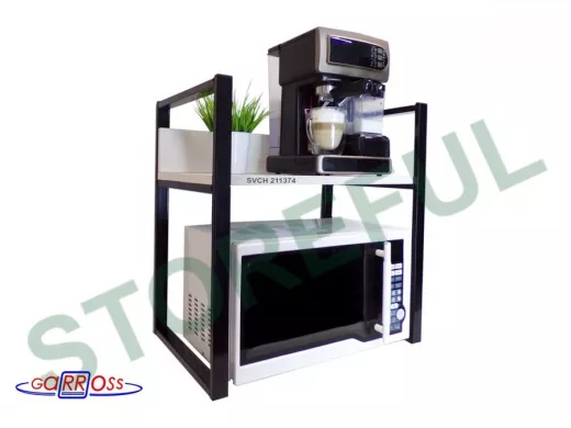 • Универсальная подставка для бытовой техники (микроволновой печи, кофемашины, тостера, электрического чайника и др) позволяет эффективно использовать место на столе.