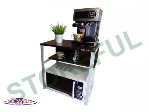 • Универсальная подставка для бытовой техники (микровоновой печи, кофемашины, тостера, электрического чайника и др) позволяет эффективно использовать место на столе.