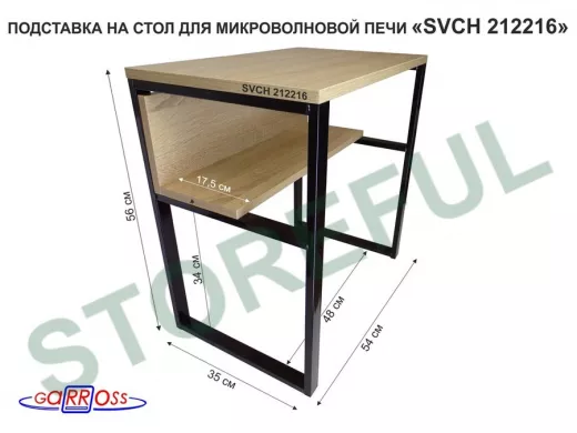 Подставка на стол для микроволновой печи "SVCH 212216" высота 56см, 54х35см и 54х17см,черный, дуб