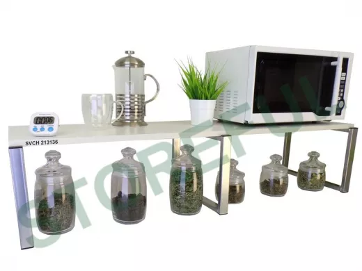 В корзину Купить в 1 клик Подставка на стол для микроволновой печи, высота 27см, серебр "SVCH 213136" полка 120х30см, сосна