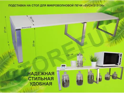 Подставка на стол для микроволновой печи, высота 27см, серебр "SVCH 213136" полка 120х30см, сосна