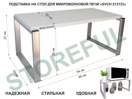 В корзину Купить в 1 клик Подставка на стол для микроволновой печи, высота 27см, серебр "SVCH 213133" полка 60х30см, сосна