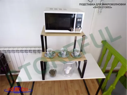 • Универсальная подставка для бытовой техники (микровоновой печи, кофемашины, тостера, электрического чайника и др) позволяет эффективно использовать место на столе.