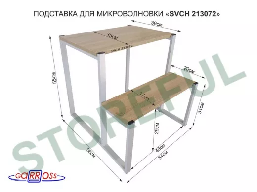 В корзину Купить в 1 клик Подставка для микроволновки, серый, 55см "SVCH 213072" с двумя уровнями 55 и 31 см, дуб сонома