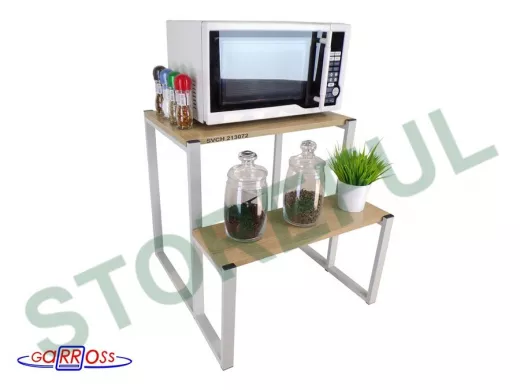 • Универсальная подставка для бытовой техники (микровоновой печи, кофемашины, тостера, электрического чайника и др) позволяет эффективно использовать место на столе.