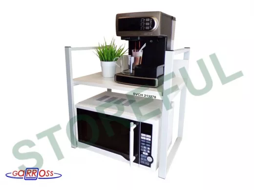 • Универсальная подставка для бытовой техники (микроволновой печи, кофемашины, тостера, электрического чайника и др) позволяет эффективно использовать место на столе.