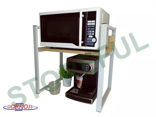 • Универсальная подставка для бытовой техники (микроволновой печи, кофемашины, тостера, электрического чайника и др) позволяет эффективно использовать место на столе.