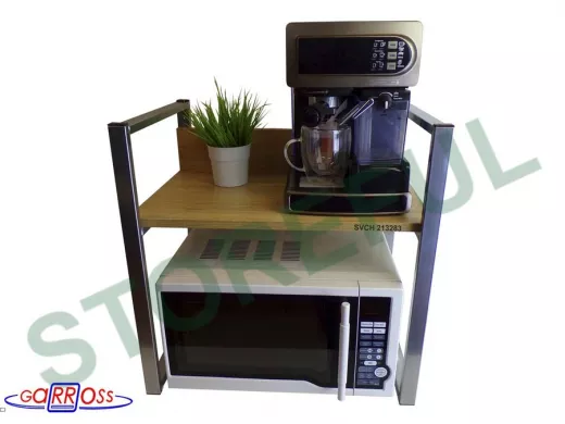 • Универсальная подставка для бытовой техники (микроволновой печи, кофемашины, тостера, электрического чайника и др) позволяет эффективно использовать место на столе.