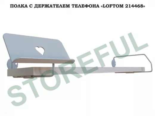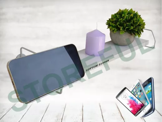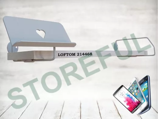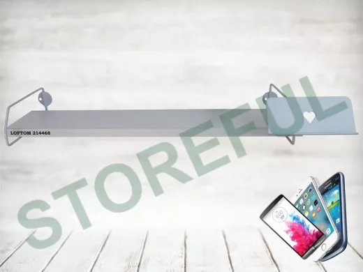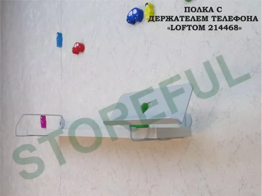 Полка с держателем телефона, серый "LOFTOM 214468" полка 54х10 см, сосна выбеленная