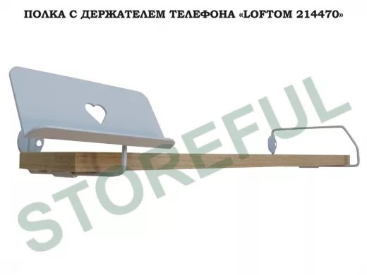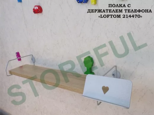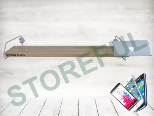 В корзину Купить в 1 клик Полка с держателем телефона, серый "LOFTOM 214470" полка 54х10 см, дуб сонома