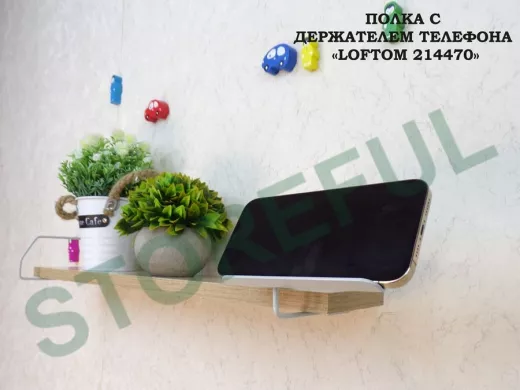 Полка с держателем телефона, серый "LOFTOM 214470" полка 54х10 см, дуб сонома