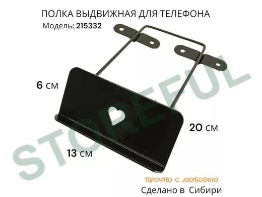 Полка для телефона стальной прочный выдвижной держатель "ABILOVE 215332" черный 6х13,5х20 см
