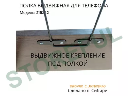 • Универсальная выдвижная подставка для телефона крепится снизу под шкаф, стол, подставку.