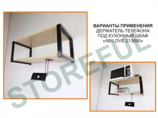 Стальной прочный держатель телефона 13,5х6 см под кухонный шкаф "ABILOVE 213690" цвет черный