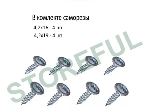 •  Ножка крепится на 4 самореза, в комплекте два вида разной длины.