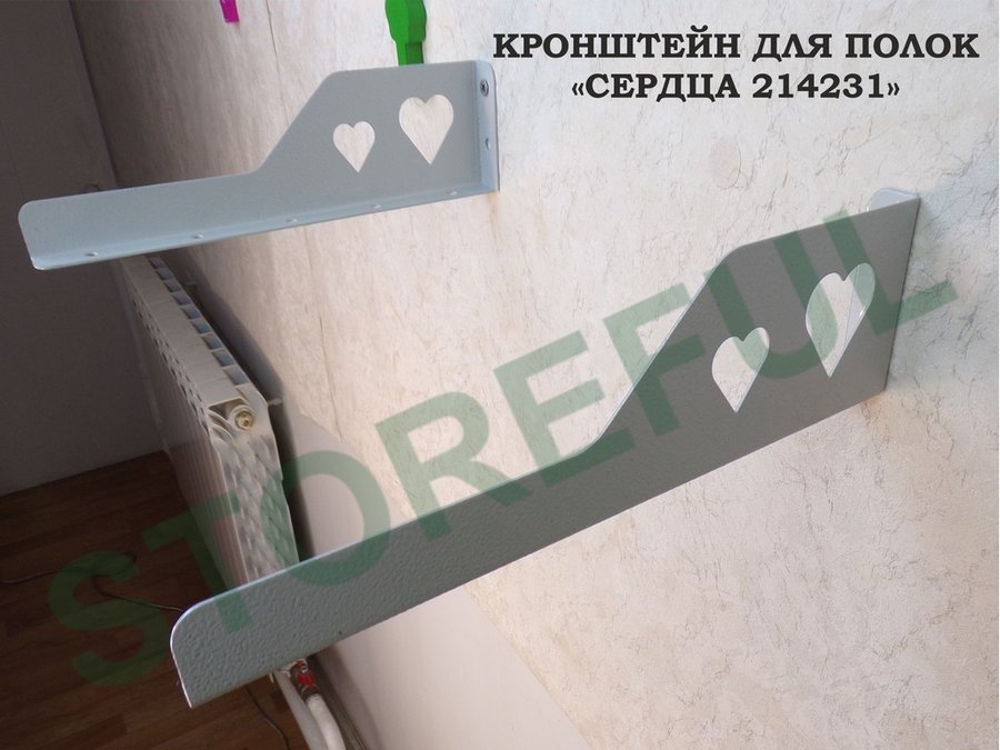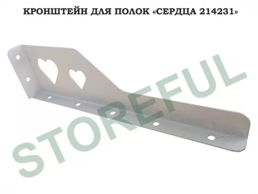В корзину Купить в 1 клик Кронштейн "СЕРДЦА 214231" для полок, правый 30x8 см , 7 отверстий 7 мм, серый