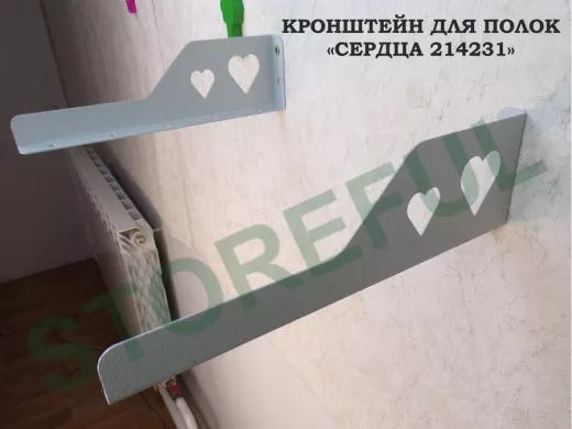 Кронштейн "СЕРДЦА 214231" для полок, правый 30x8 см , 7 отверстий 7 мм, серый