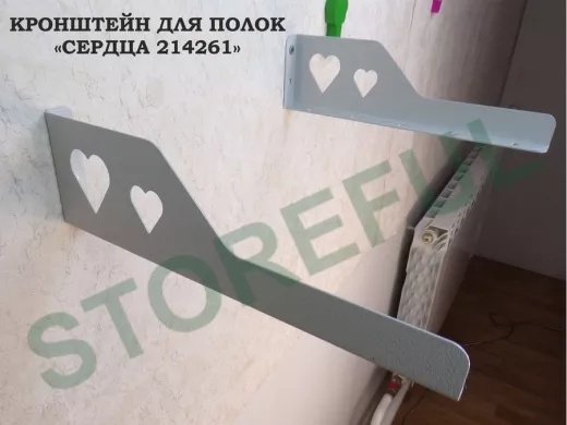 В корзину Купить в 1 клик Кронштейн "СЕРДЦА 214261" для полок, левый 30x8 см , 7 отверстий 7 мм, серый