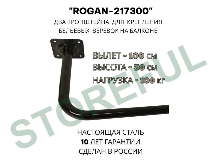 В корзину Купить в 1 клик Сушилка для белья под веревки, 2 кронштейна, длина 100см, вылет 30см "ROGAN-217300" черный, 32мм