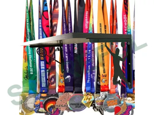Полка спортивная "БАДМИНТОН ABILOVE-214677" для кубков, наград, грамот, медальница, венге, 30х60см